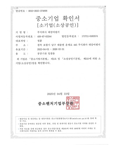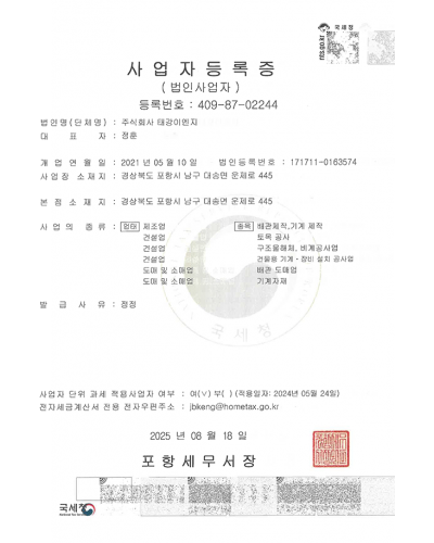 태강이엔지 사업자등록증